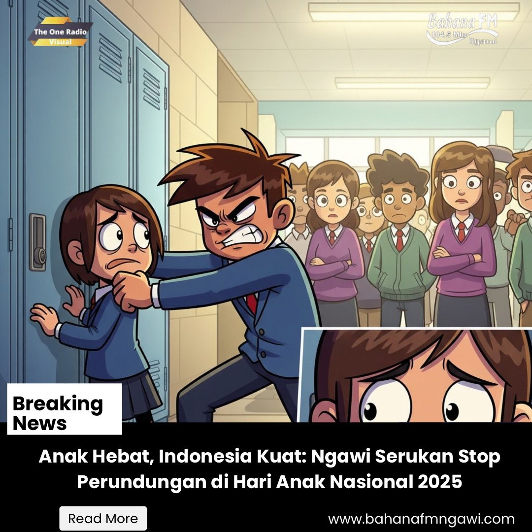 Bahanafmngawi.com – Di tangan anak-anak hari ini, masa depan Indonesia ditentukan. Di Hari Anak Nasional 2025 ini, Ngawi menyerukan harapan besar: menciptakan generasi hebat, sehat, dan bebas dari perundungan menuju Indonesia Emas 2045.