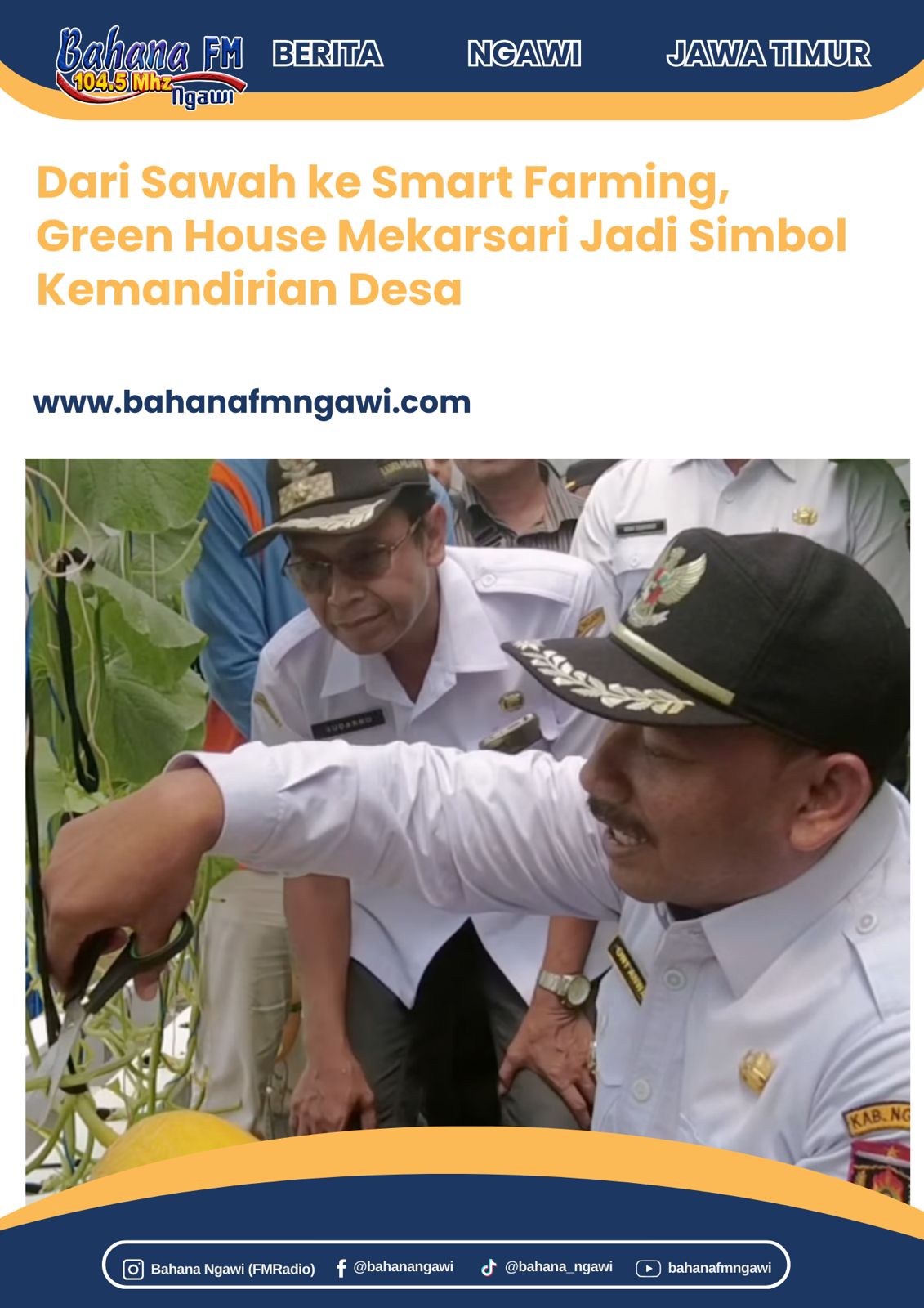 Bahanafmngawi.com – Upaya mewujudkan kemandirian ekonomi desa berbasis teknologi kembali ditegaskan Pemerintah Kabupaten Ngawi, Bupati Ngawi Ony Anwar Harsono meresmikan Green House BUMDes Mekarsari di Desa Pelang Kidul, Kecamatan Kedunggalar.