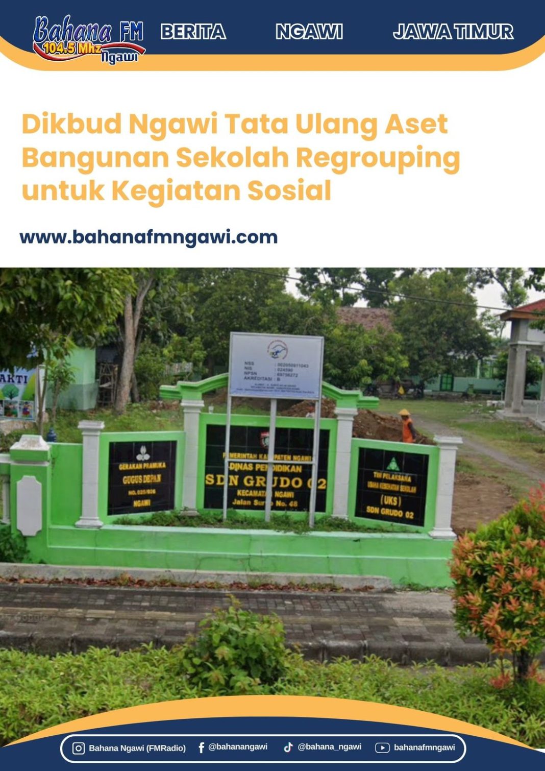Bahanafmngawi.com – Dinas Pendidikan dan Kebudayaan (Dikbud) Kabupaten Ngawi tengah melakukan penataan ulang aset sekolah dasar (SD) yang sudah tidak beroperasi akibat regrouping dalam beberapa tahun terakhir. Upaya ini dilakukan agar bangunan sekolah yang kini terbengkalai bisa kembali memberi manfaat bagi masyarakat.