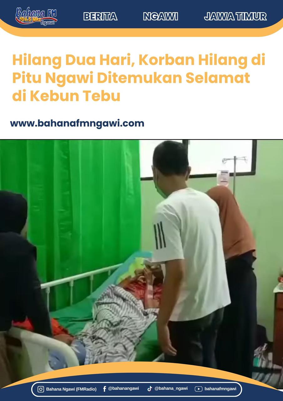 Bahanafmngawi.com Pencarian intensif selama dua hari terhadap Sri Wahyuni ​​(53), warga Desa Cantel, Pitu, Ngawi, berakhir dengan kebahagiaan. Perempuan yang dilaporkan hilang sejak Rabu (22/10/2025) setelah berpamitan ke sungai, ditemukan dalam keadaan hidup pada Jumat pagi.