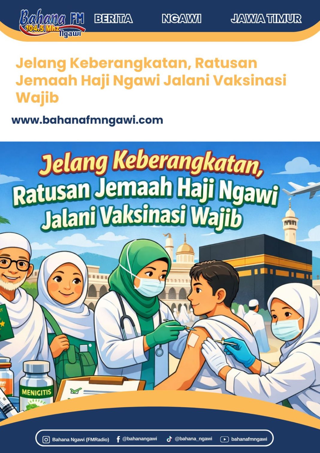 Bahanafmngawi.com – Menjelang musim haji 2026, berbagai persiapan terus dilakukan oleh jemaah calon haji asal Kabupaten Ngawi. Salah satu tahapan penting yang kini tengah dijalani adalah vaksinasi sebagai bentuk perlindungan kesehatan sebelum berangkat menunaikan ibadah di Tanah Suci.