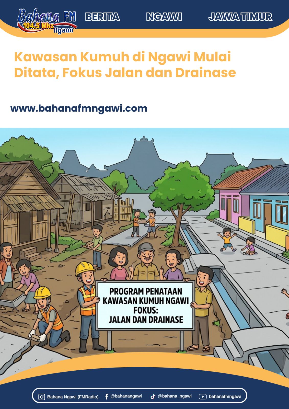 Bahanafmngawi.com – Upaya mempercantik wajah permukiman terus digenjot Pemerintah Kabupaten Ngawi. Tahun ini, anggaran sebesar Rp1 miliar disiapkan untuk mengintervensi sejumlah kawasan kumuh agar berubah menjadi lingkungan yang lebih layak huni dan sehat.