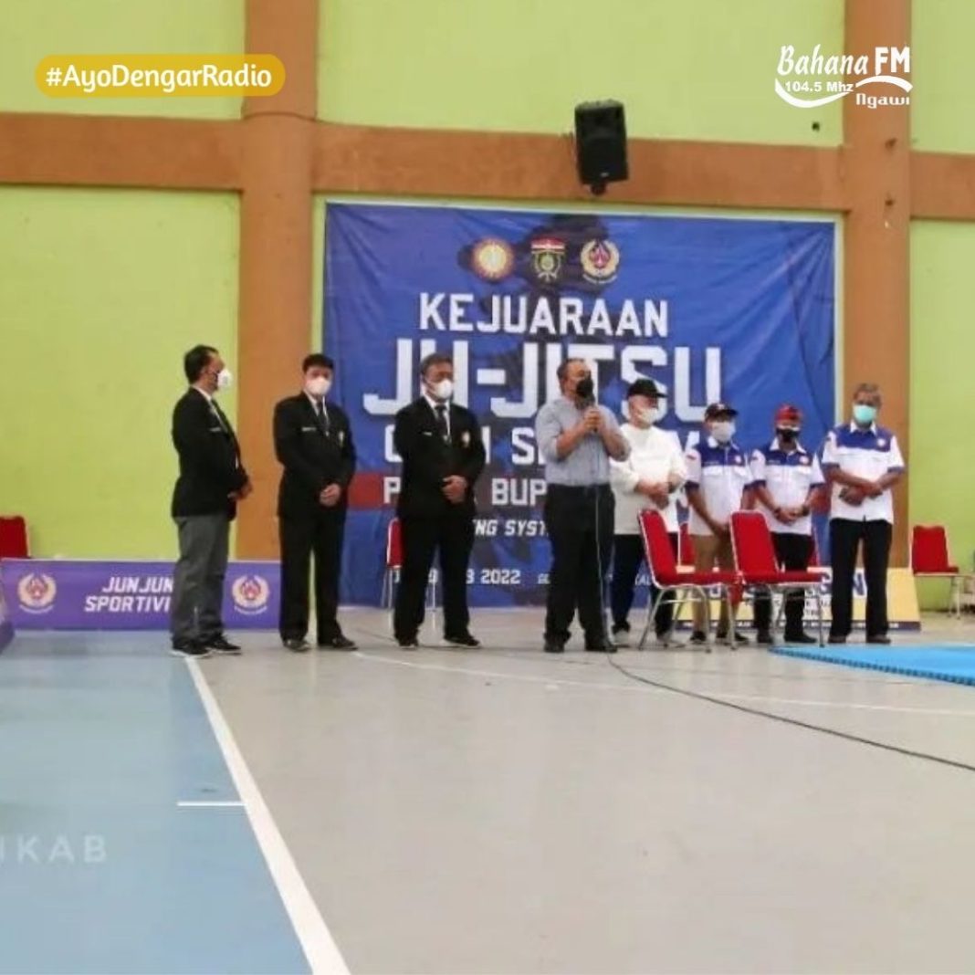BAHANAFM,NGAWI – Bupati Ngawi Ony Anwar Harsono tinjau pelaksanaan kejuaraan Ju Jitsu Open Se – jawa Timur, Piala Bupati Ngawi, di GOR Bung Hatta Ngawi, Sabtu (19/02/22). Disampaikan Bupati Ngawi, kejuaraan ini menjadi wadah bagi atlet bela diri untuk mencetak berprestasi sekaligus persiapan di event yang lebih tinggi, “Selain untuk silaturahmi kejuaraan ini sebagai ajang bagi atlet Ngawi, agar mendapat kesempatan untuk uji coba dengan atlet regional se Jatim,” katanya. Menurut Ony Anwar Harsono ajang ini juga sebagai upaya menyiapkan atlet Ju Jitsu Ngawi di Porprov mendatang, “Dengan ini akan ada evaluasi dan skema seleksi, sehingga akan lebih siap lagi dalam kejuaraan Porprov nanti,” lanjutnya. Tidak kalah penting, ditandaskan Bupati Ngawi, kegiatan ini salah satunya juga untuk mereduksi hal negatif dikalangan pemuda salah satunya Narkoba, yang belakangan ini kian marak, “Dengan ruang untuk berprestasi dan berkreatifitas lebih banyak, bisa menjadikan anak – anak kita memiliki banyak pilihan dalam melakukan hal positif,” terangnya. Seperti disebutkan panitia penyelenggara, Wira Prasetya