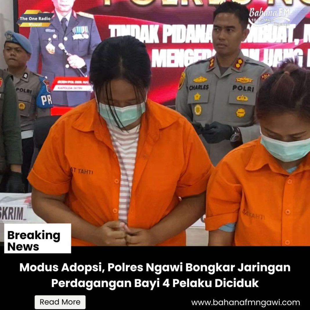 Bahanafmngawi.com – Jajaran Satreskrim Polres Ngawi berhasil mengungkap kasus perdagangan orang berkedok adopsi. Empat pelaku ditangkap setelah laporan mencurigakan dari perangkat desa di Kecamatan Bringin.