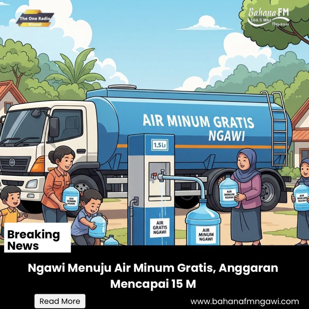 Bahanafmngawi.com – Bupati Ngawi Ony Anwar Harsono mengungkapkan rencana ambisius untuk menghadirkan layanan air minum gratis bagi warganya. Dengan memanfaatkan potensi sumber daya yang ada, Pemkab Ngawi menargetkan distribusi air minum 1,5 liter per hari untuk setiap warga setara dengan melayani 600 ribu jiwa.
