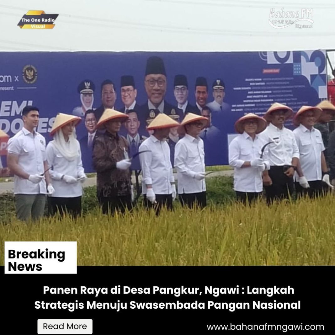 Sementara itu, Bupati Ngawi Ony Anwar Harsono menyampaikan bahwa acara panen raya ini merupakan langkah penting dalam mewujudkan Indonesia yang mandiri pangan. Ia juga menekankan pentingnya pengembangan teknologi pertanian yang dapat mendukung keberlanjutan produksi pangan secara lebih efisien dan ramah lingkungan.