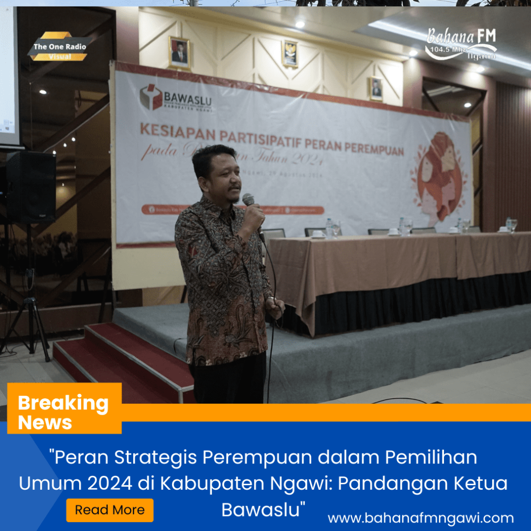 Bahananews,Ngawi – Ketua Badan Pengawas Pemilihan Umum (Bawaslu) Kabupaten Ngawi Yohanes Pradana Vidya Kusdanarko mengungkapkan pentingnya peran perempuan dalam menyukseskan pemilihan umum 2024. Ditemui usai giat “ Kesiapan Partisipatif Peran Perempuan Pada Pemilihan Tahun 2024 “ disalah satu aula pertemuan Convention Hall, Jln Raya Ngawi – Solo Desa Gemarang, Watualang Ngawi. Diungkapkannya bahwa partisipasi perempuan tidak hanya sebagai pemilih, tetapi juga sebagai pengawas dan pelaku dalam proses demokrasi.