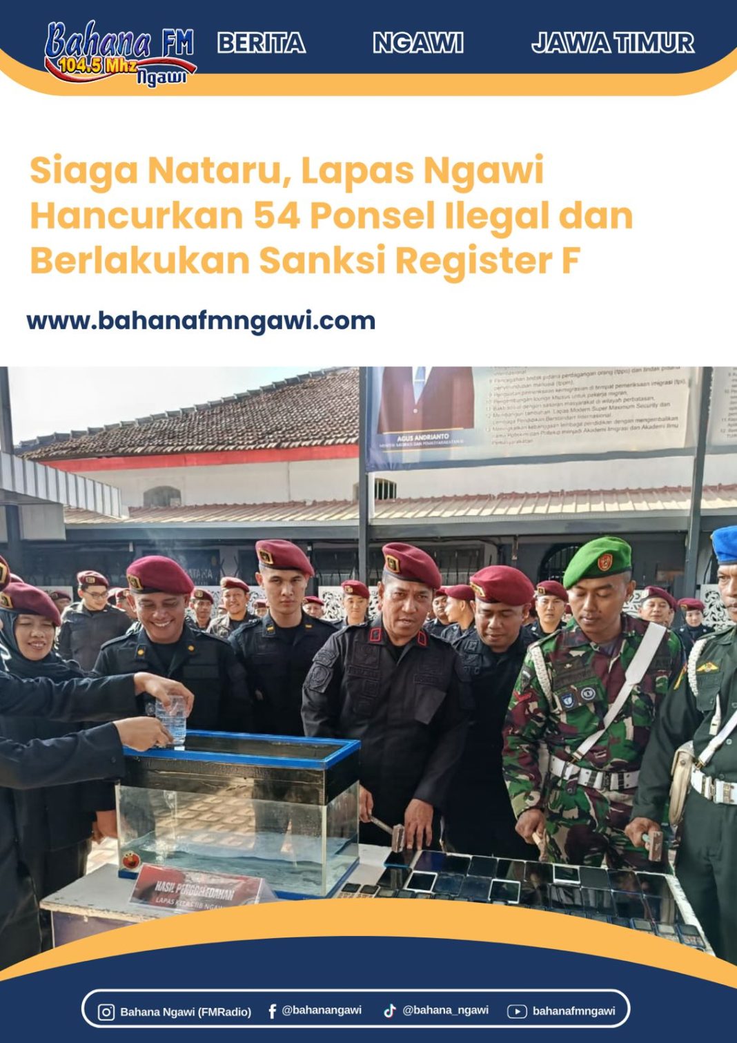 Rangkaian kegiatan ditutup dengan pemusnahan ponsel secara simbolis. Langkah tegas ini menjadi pesan kuat bahwa Lapas Ngawi berkomitmen menjaga keamanan dan ketertiban, sekaligus memastikan lingkungan pemasyarakatan bersih dari peredaran barang terlarang.(Ehr)