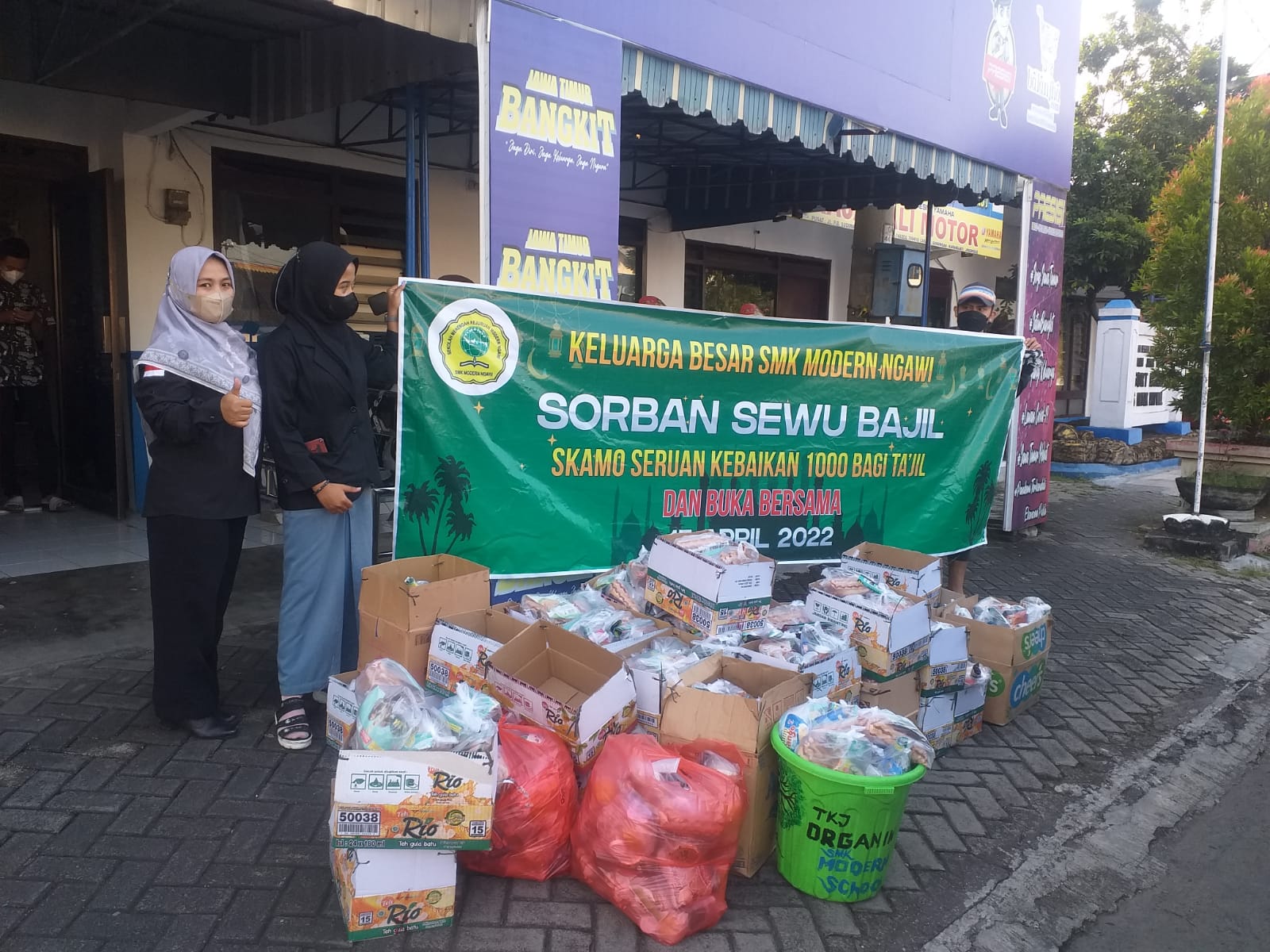 Sebanyak 1000 paket takjil dibagikan pada warga kota Ngawi oleh Pengurus OSIS SMK Modern Ngawi. Pembagian takjil ini merupakan wujud kepedulian bersama kepada saudara kita khususnya kaum muslimin yang melaksanakan ibadah puasa. Takjil dibagikan secara cuma-cuma atau gratis kepada pengendara motor, pedagang, tukang becak, dan warga sekitar.