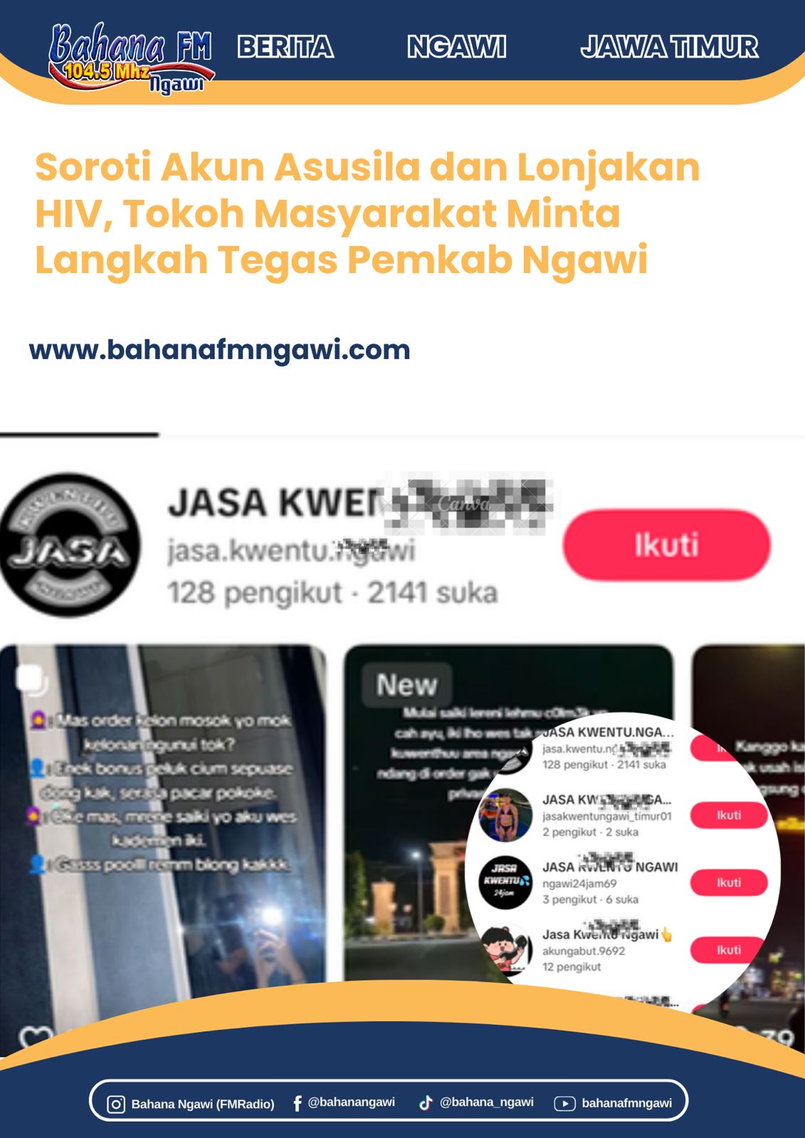 Lebih lanjut, Atong mengingatkan bahwa persoalan akun asusila tidak bisa dipandang sepele, mengingat dampak sosialnya yang luas, termasuk terhadap kesehatan masyarakat. Ia menyinggung data peningkatan angka HIV di Ngawi yang menurutnya terjadi cukup signifikan dari tahun ke tahun.