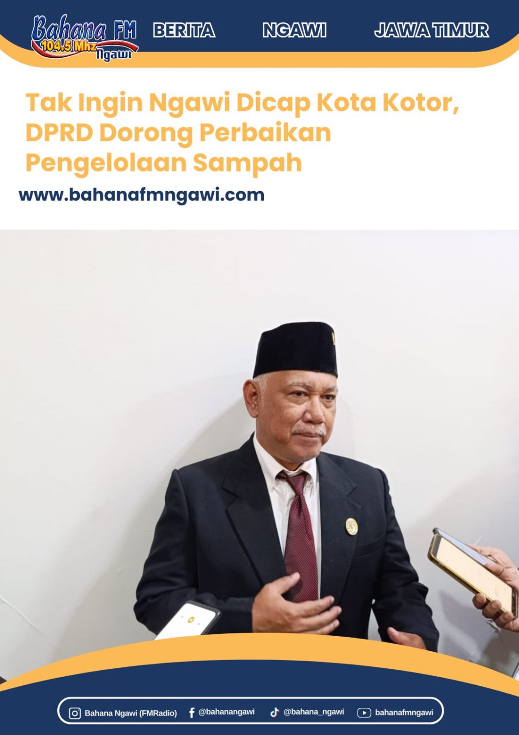 Ketua DPRD Ngawi, Yuwono Kartiko, mengaku prihatin dengan kondisi pengelolaan sampah yang dinilai masih belum optimal. Ia menilai sejumlah aspek masih perlu diperbaiki, terutama terkait ketersediaan sarana dan prasarana pendukung kebersihan di berbagai lokasi.