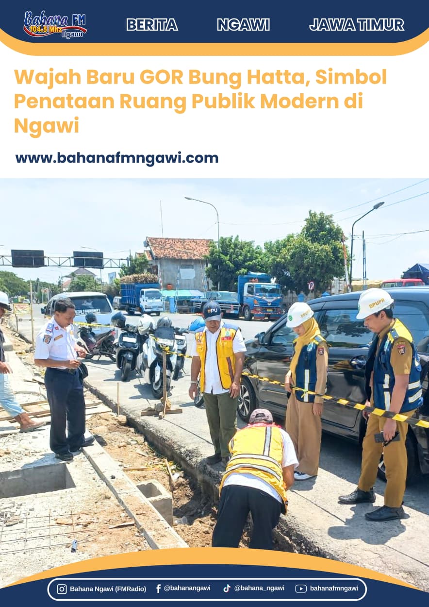 Bahanafmngawi.com – Pemerintah Kabupaten Ngawi melalui Dinas Pekerjaan Umum dan Penataan Ruang (DPUPR) tengah melaksanakan proyek optimalisasi bangunan dan lingkungan GOR Bung Hatta Ngawi. Kegiatan ini meliputi dua fokus utama, yakni rehabilitasi gedung utama GOR serta pembangunan trotoar dan penataan area kios PKL di sekitarnya.