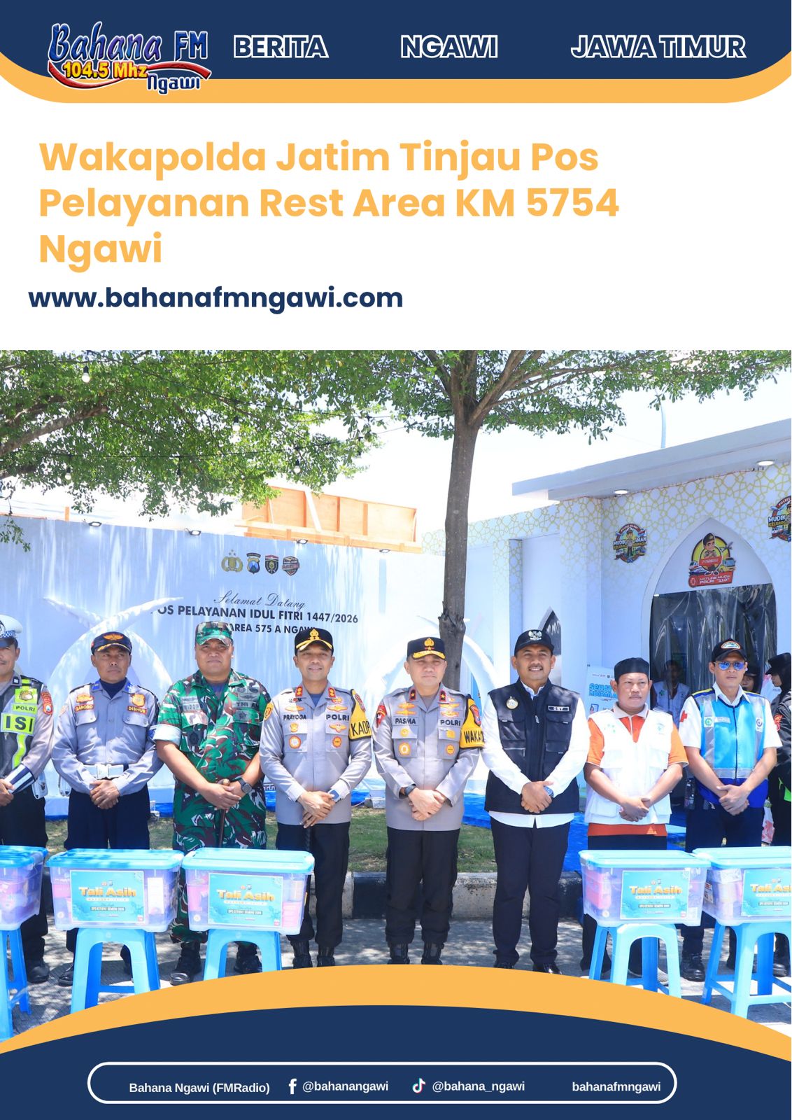 Dalam kunjungannya, Wakapolda Jatim memastikan seluruh anggota yang bertugas siap memberikan pelayanan terbaik kepada masyarakat, khususnya para pemudik yang melintas di wilayah Kabupaten Ngawi. Selain itu, pengecekan juga meliputi fasilitas pendukung seperti ruang istirahat, layanan kesehatan, serta kelengkapan operasional lainnya.