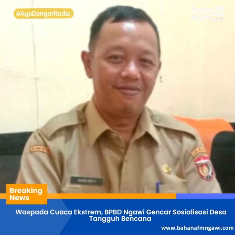 BAHANAfm,Ngawi – Kepala Badan Penanggulangan Bencana Daerah (BPBD), Kab. Ngawi, Anang Heri Prabowo, menjelaskan pihaknya gencar lakukan sosialisasi Desa Tangguh Bencana (Destana) sebagai upaya antisipasi potensi bencana di Kabupaten Ngawi. Sosialisasi ini mendasar di Kabupaten Ngawi menjadi salah satu penyumbang bencana alam yang sering terjadi disaat musim pancaroba sepertihalnya saat sekarang.