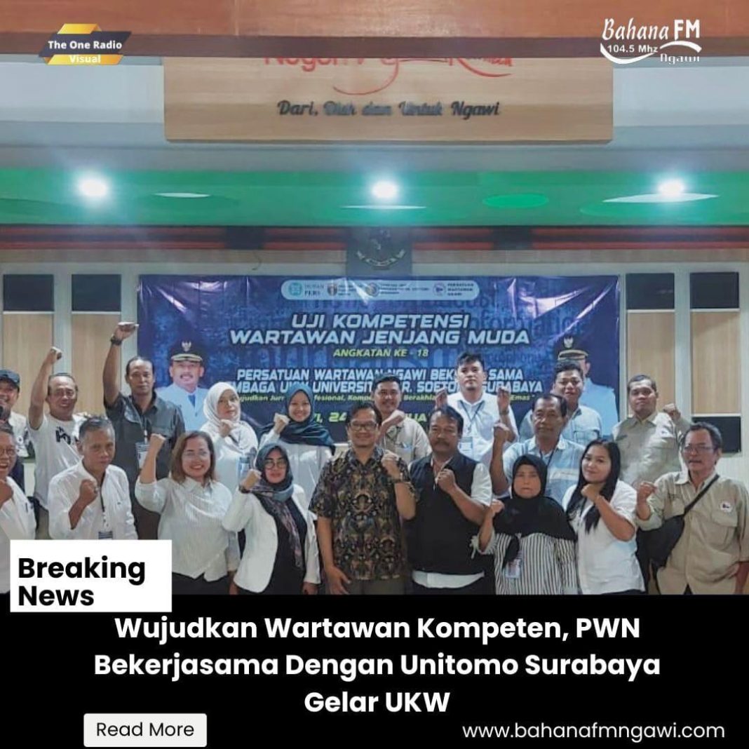 Sebagai upaya meningkatkan profesionalitas wartawan di Kabupaten Ngawi, Persatuan Wartawan Ngawi (PWN) bekerjasama dengan Universitas Dr. Soetomo Surabaya menggelar Uji Kompetensi Watawan (UKW). Berlangsung selama 3 hari di Gedung Kesenian Kabupaten Ngawi pada Jum’at 24 – Minggu 26 Januari 2025.